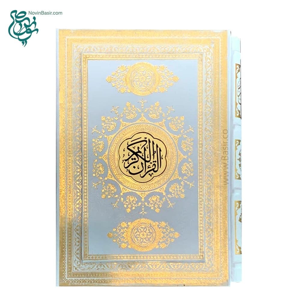 کتاب قرآن عروس بصیر گلاسه لبه طلایی همراه با قاب کشویی
