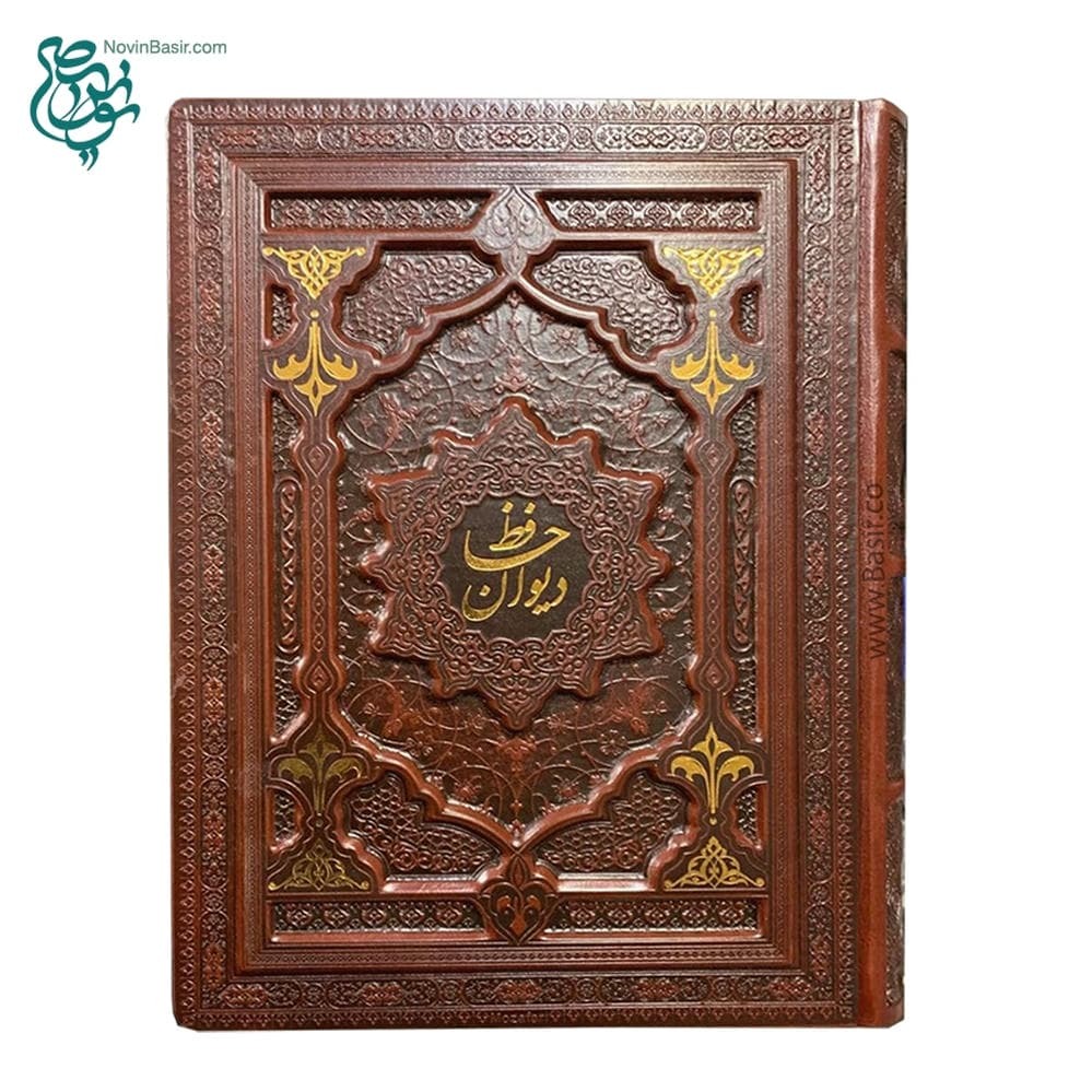 کتاب نفیس دیوان حافظ گلاسه چرمی همراه با قاب بازشو