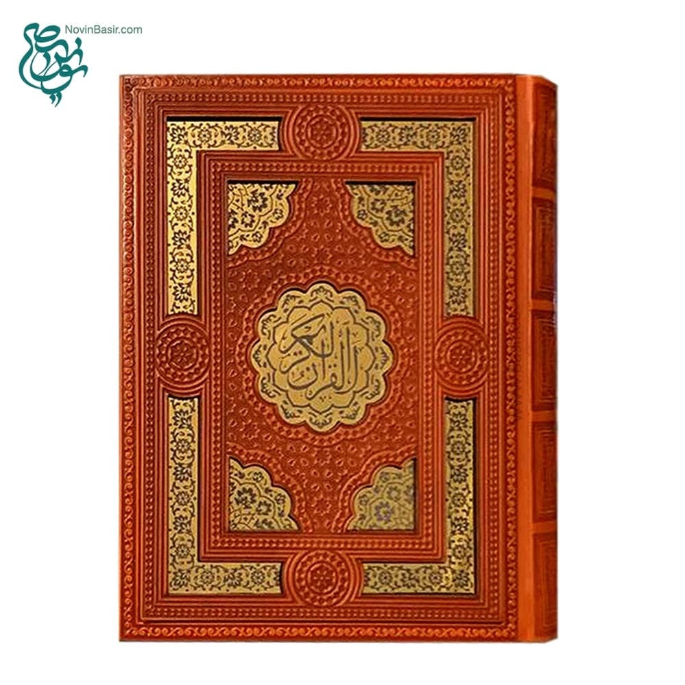 کتاب نفیس قرآن همراه با جعبه (قاب باز شو) طرح چرم با پلاک طلایی با کاغذ معطر مارگانو آلملن طرح ابر و باد، خط عثمان طه و ترجمه فارسی زیر در قطع جیبی که مورد استقبال هموطنان عزیز قرار گرفته است.
