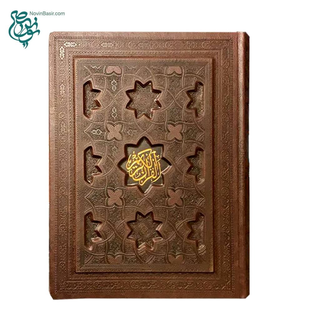 کتاب قرآن نفیس و معطر چرمی لیزری با قاب بازشو (جعبه)