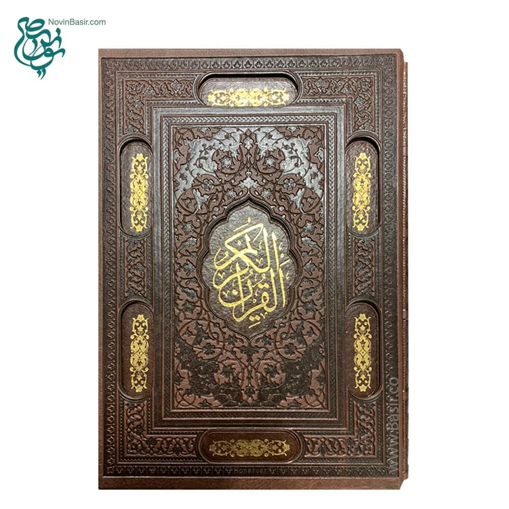 کتاب نفیس قرآن کریم همراه با قاب کشویی چرمی (ترمو)