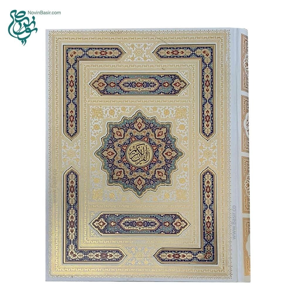 کتاب قرآن نفیس و معطر سفید پلاک رنگی در قطع رحلی