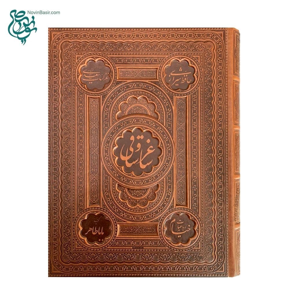 کتاب نفیس ساغر و ساقی چرمی برجسته همراه با جعبه در قطع رحلی