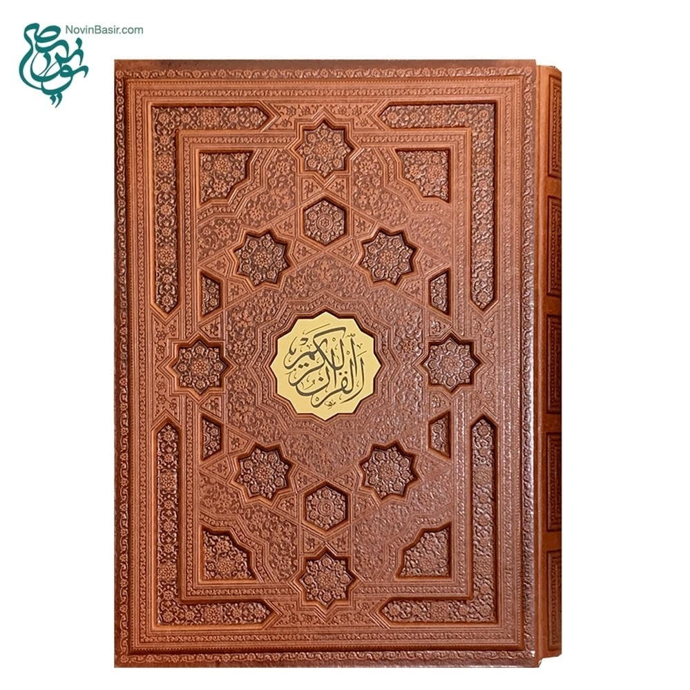 کتاب قرآن بزرگ خط اشرفی همراه با قاب کشویی ترمو (چرمی) طر ح برجسته