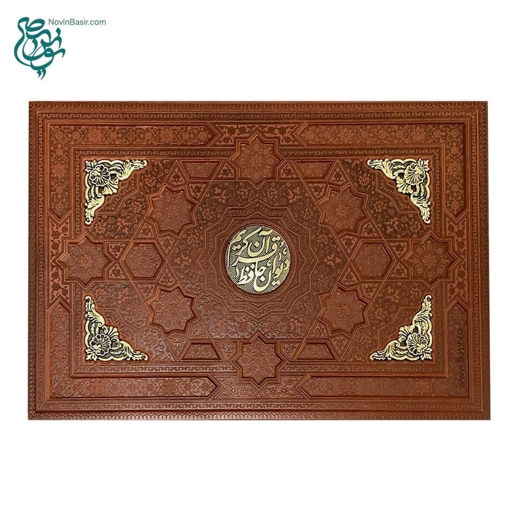 کتاب قرآن و حافظ نفیس و معطر طرح چرم و مس برجسته با جعبه نفیس