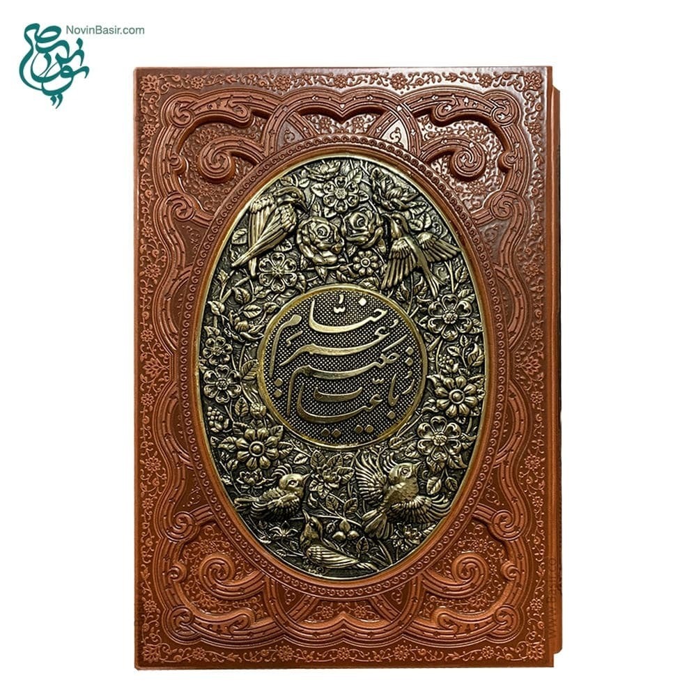 کتاب نفیس رباعیات خیام چرمی برجسته طرح مس