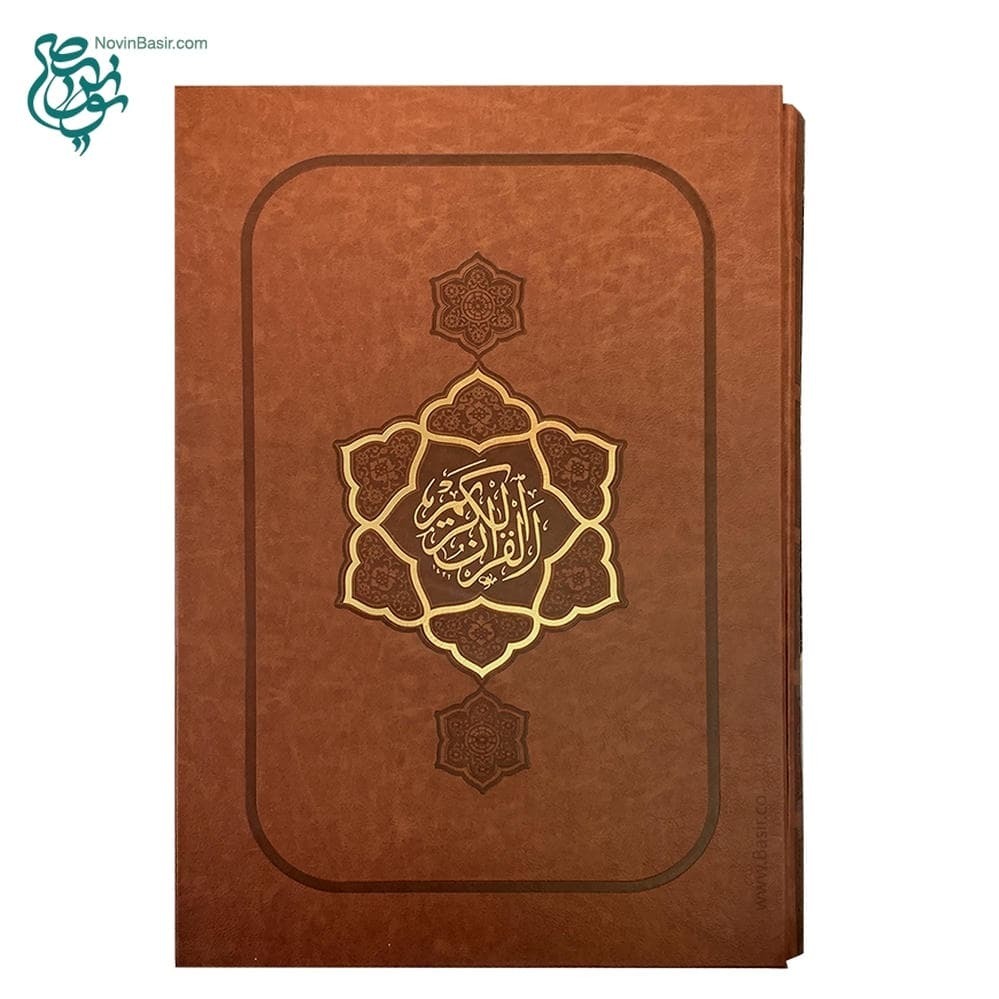 کتاب قرآن الباری نفیس چرمی همراه با قاب کشویی قطع رحلی