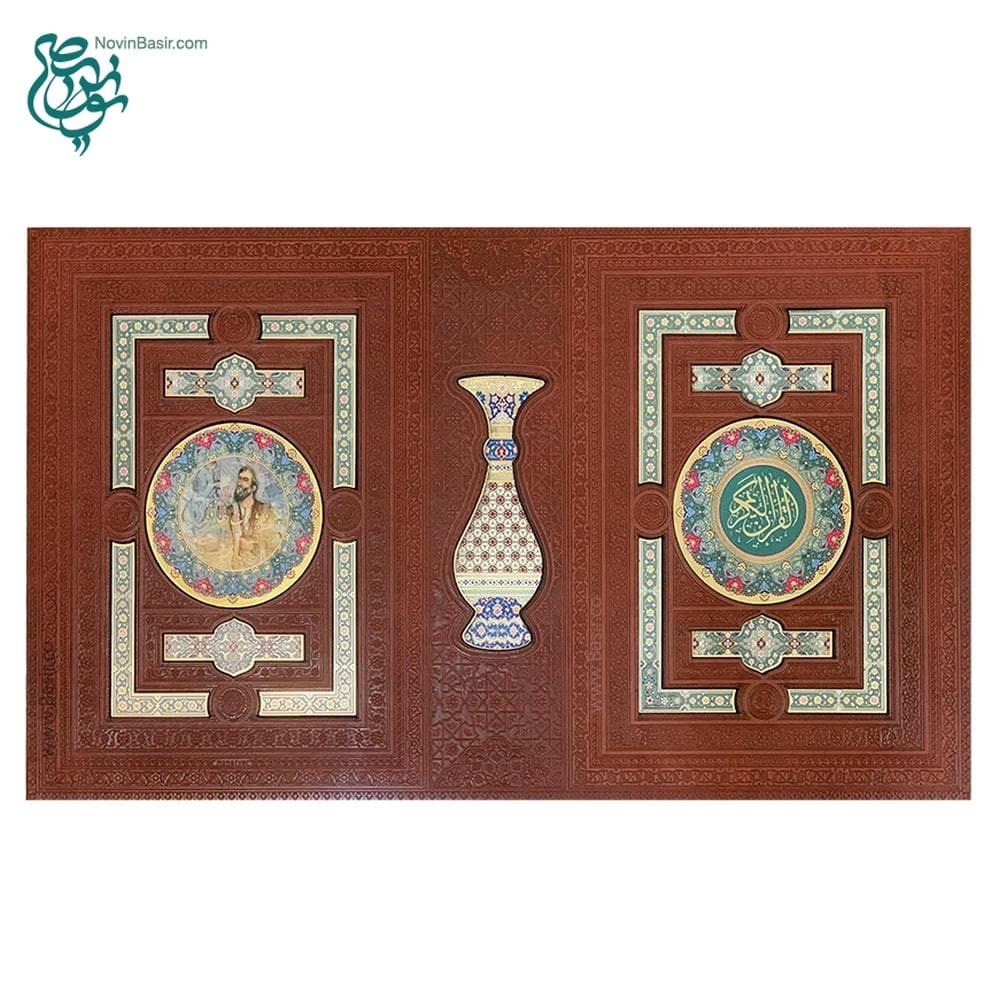 مجموعه قرآن و حافظ نفیس چرمی با گلدان خاتم همراه با جعبه