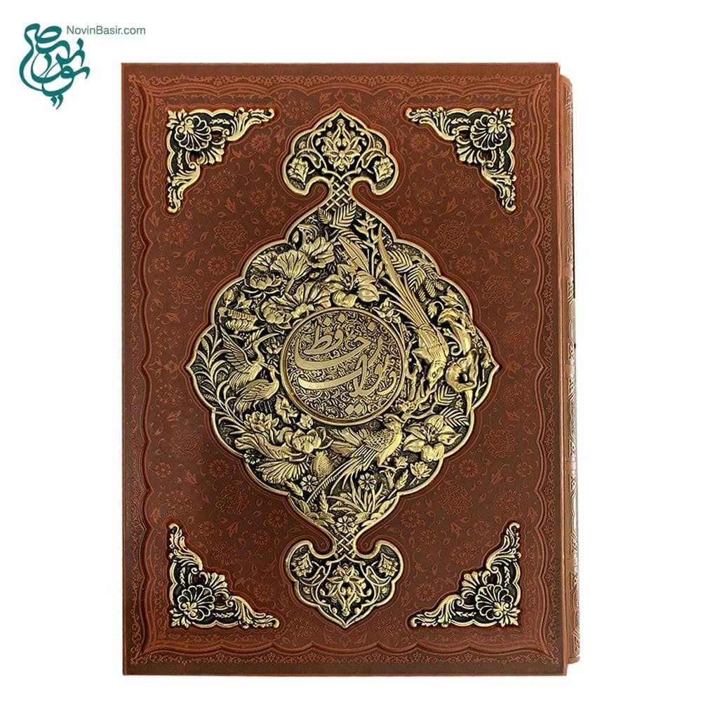 کتاب نفیس دیوان حافظ چرمی با جعبه (قاب بازشو) طرح مس