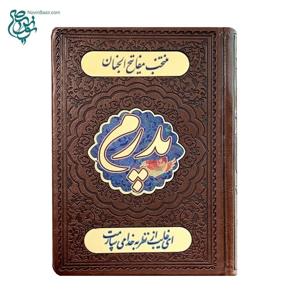 کتاب نفیس منتخب مفاتیح شامل ادعیه و زیارات (طرح پدرم) در قطع جیبی جلد چرمی همراه با پلاک رنگی