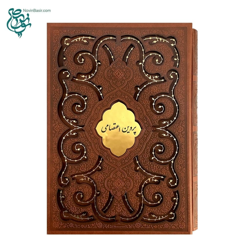 کتاب دیوان پروین اعتصامی نفیس چرمی همراه با قاب کشویی لیزری