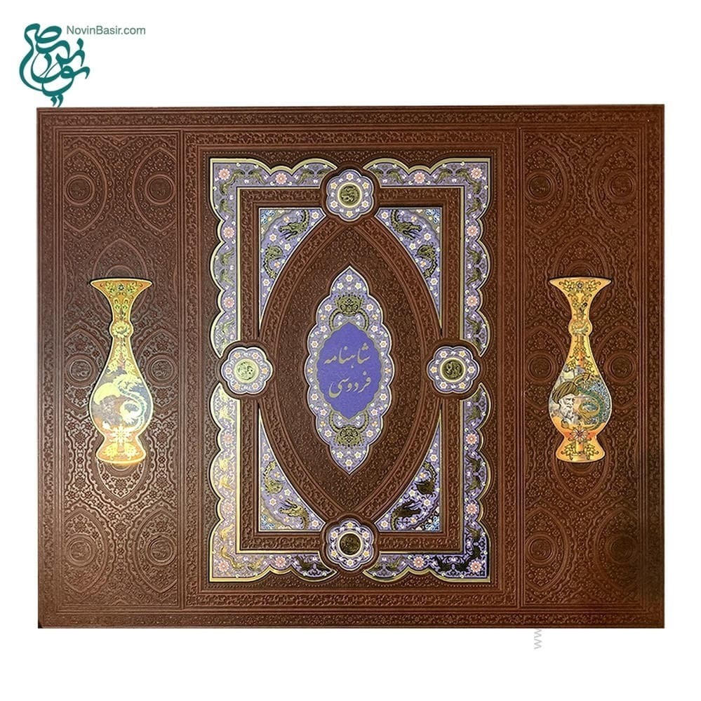 مجموعه نفیس و بسیار زیبا کتاب شاهنامه نفیس و معطر لبه تصویر همراه با جعبه لپتاپی چرمی و دو گلدان فیروزه بسیار زیبا که با طرحی فوق العاده و چشم نواز تولید شده است. این مجموعه شامل یک کتاب نفیس شاهنامه در قطع بزرگ رحلی با کاغذ معطر مارگانو طرح ابر و باد و تذهیب زیبا در داخل جعبه با دو گلدان بسیار زیبا فیروز در اطراف کتاب طراحی شده و هدیه ای بسیار نفیس و ماندگار به شمار می رود. این مجموعه توسط این مرکز (انتشارات نوین بصیر) با تخفیف های عالی در سراسر ایران توزیع می گردد.