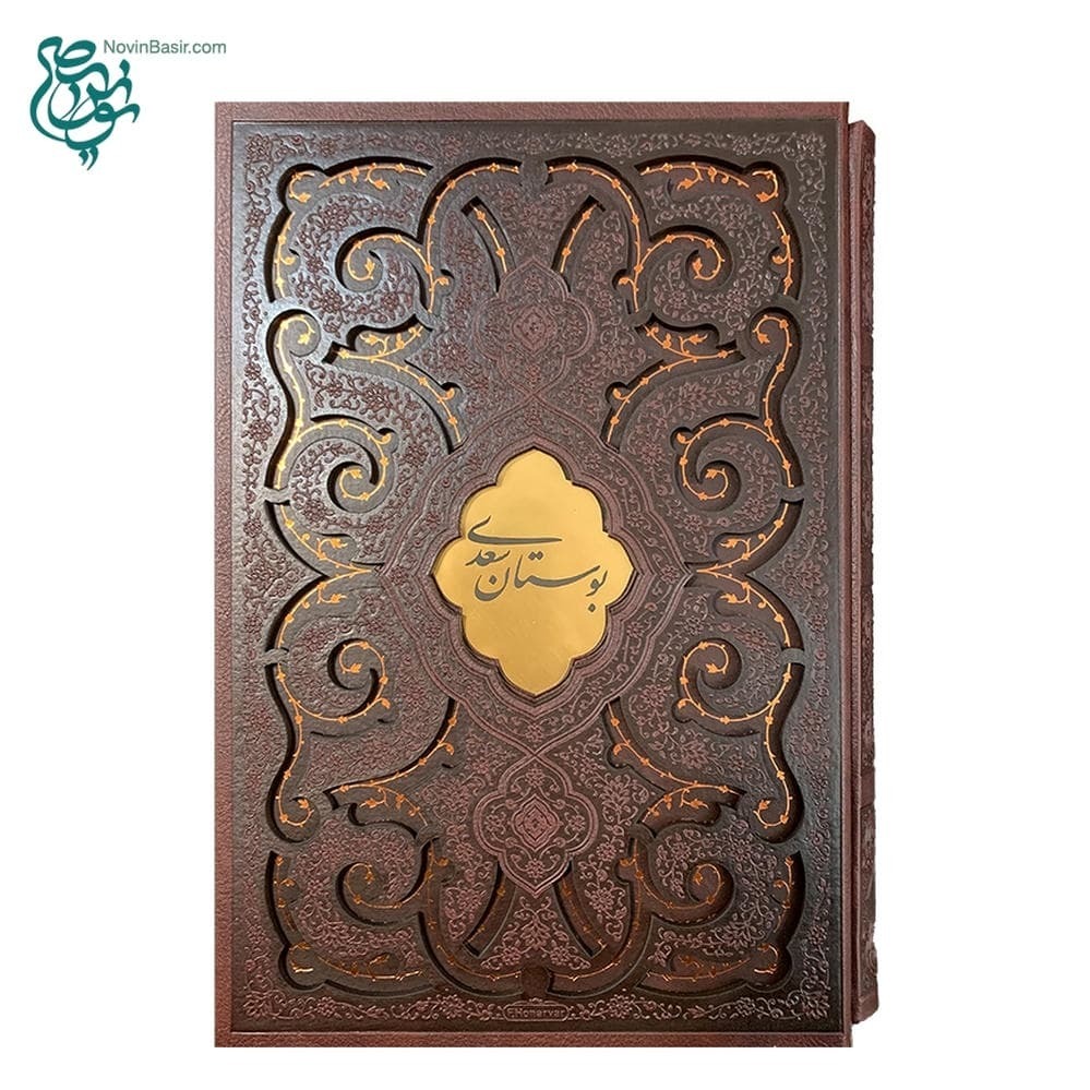 کتاب نفیس بوستان سعدی همراه با قاب کشویی چرمی طرح لیزری زیبا
