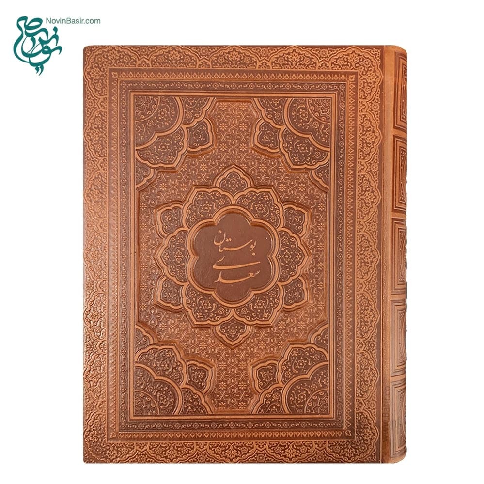 کتاب نفیس و معطر بوستان سعدی چرمی همراه با قاب بازشو (جعبه) طرح برجسته با کاغذ معطر مارگانو زیبا طرح ابرو باد و خط نستعلیق ، چاپ کاملا رنگی با تذهیب بسیار زیبا هدیهای نفیس و ماندگار برای تمامی افراد با قیمت مناسب که به صورت تک و یا در تعداد بالا با تخیفیف های ویژه توسط این موسسه در سراسر ایران توزیع می گردد.