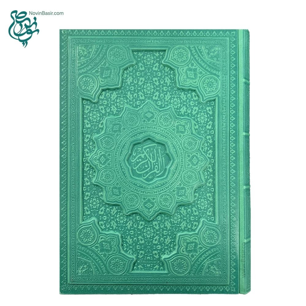 کتاب قرآن نفیس جلد رنگی لبه رنگی طرح برجسته در قطع وزیری