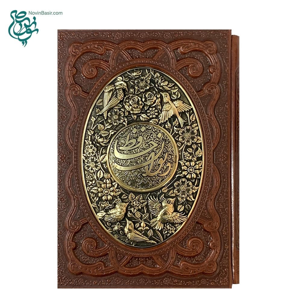 کتاب نفیس دیوان حافظ شیرازی همراه با قاب کشویی طرح چرم و مس با کاغذ گلاسه و چاپ رنگی زیبا همراه با فالنامه که در قطع وزیری به چاپ رسیده و در سراسر ایران توزیع می گردد.