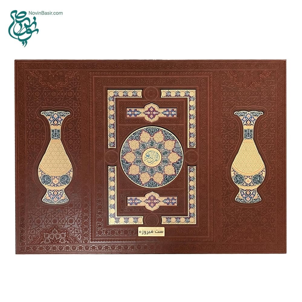 مجموعه نفیس کتاب قرآن چرمی همراه با دو گلدان فیروزه و جعبه