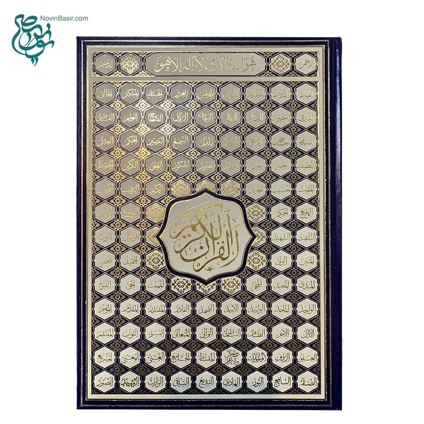 کتاب نفیس قرآن بدون ترجمه در قطع بزرگ رحلی با جلد طرح اسماء و چاپ کاملا رنگی