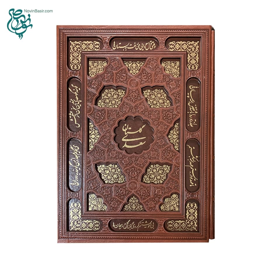 کتاب نفیس گلستان سعدی چرمی همراه با قاب کشویی لیزری