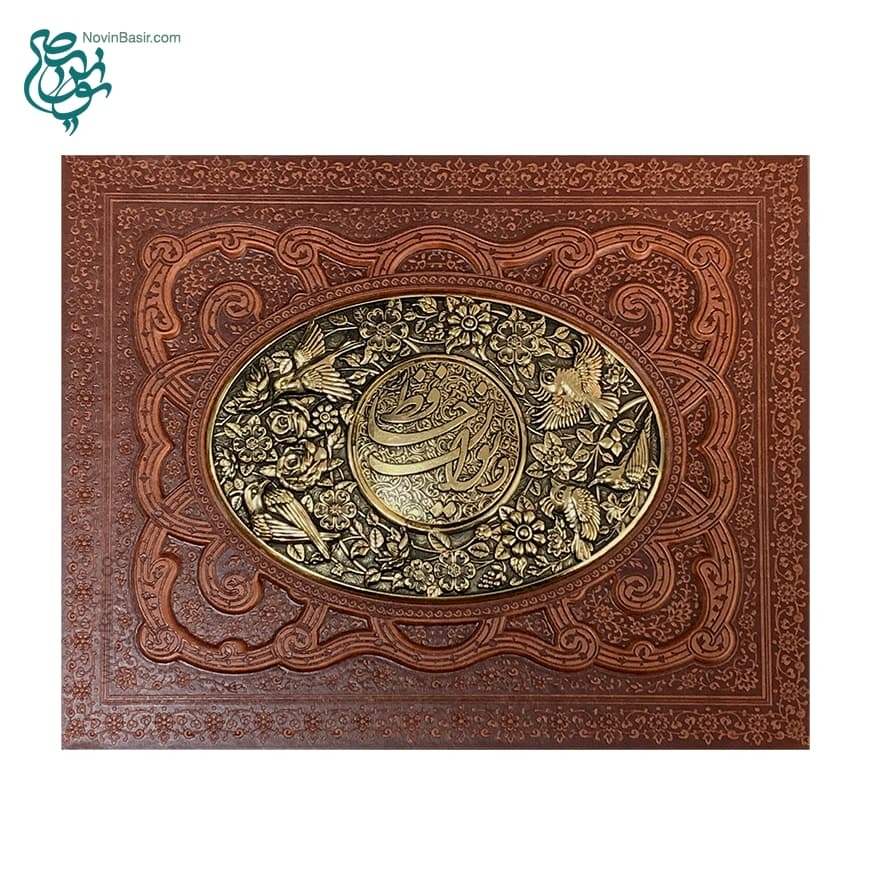 کتاب نفیس و معطر دیوان حافظ همراه با قاب بازشو (جعبه) لپتاپی طرح چرم و مس بسیار زیبا و نفیس در قطع وزیری با کاغذ معطر مارگانو طرح ابر و باد و کیفیت عالی که به صورت تک و یا در تعداد بالا توسط انتشارات نوین بصیر در سراسر ایران توزیع می گردد.