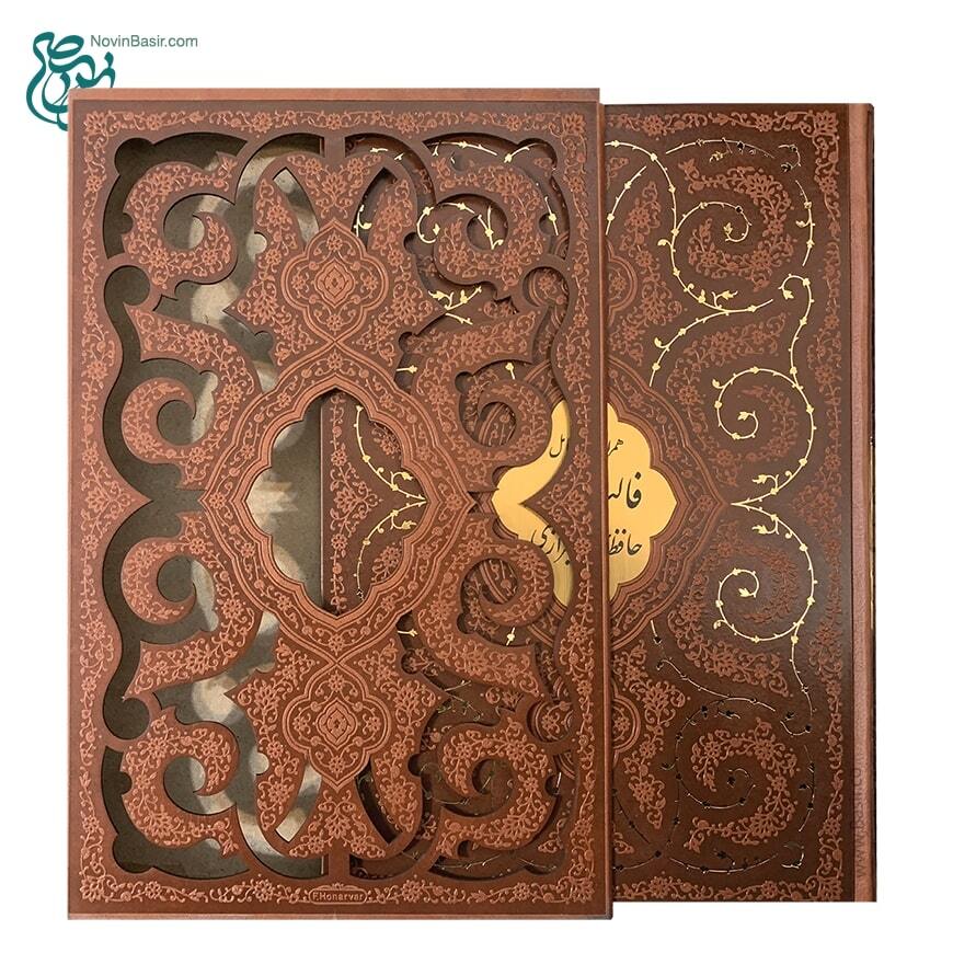 کتاب نفیس حافظ چرمی همراه با قاب کشویی لیزری قطع رحلی
