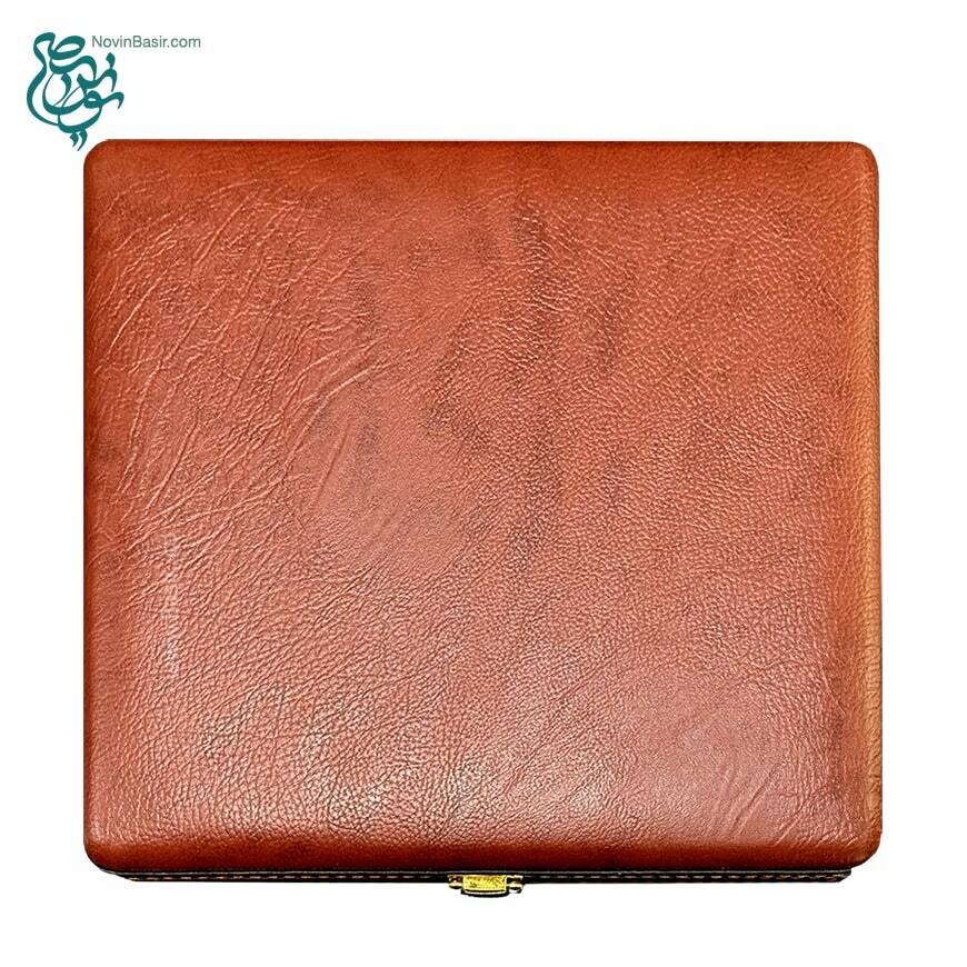 مجموعه حافظ عقیق و خودکار جلد چرم طبیعی قطع جیبی