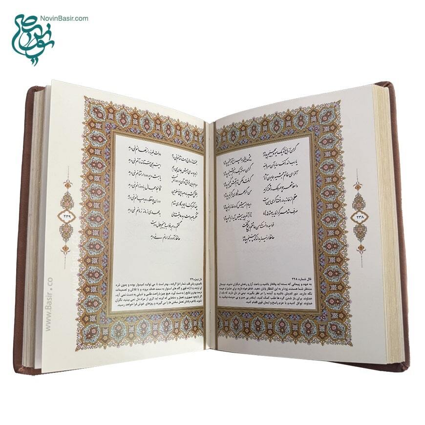 مجموعه کتاب حافظ قطع جیبی جلد چرمی همراه با عقیق کار شده روی جلد و خودکار، داخل قاب زیبای چرم طبیعی