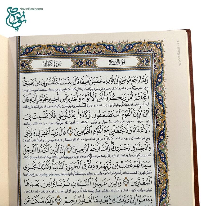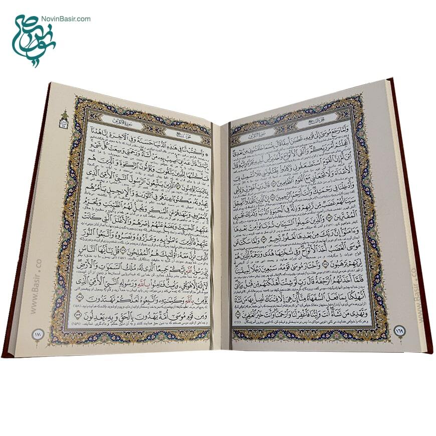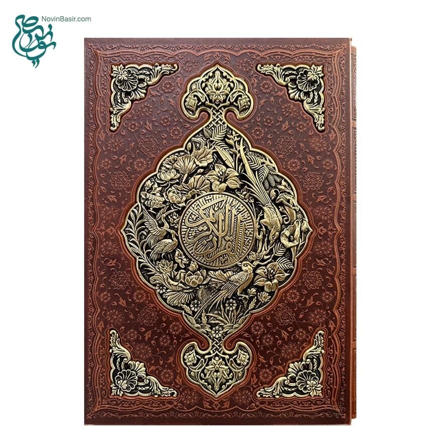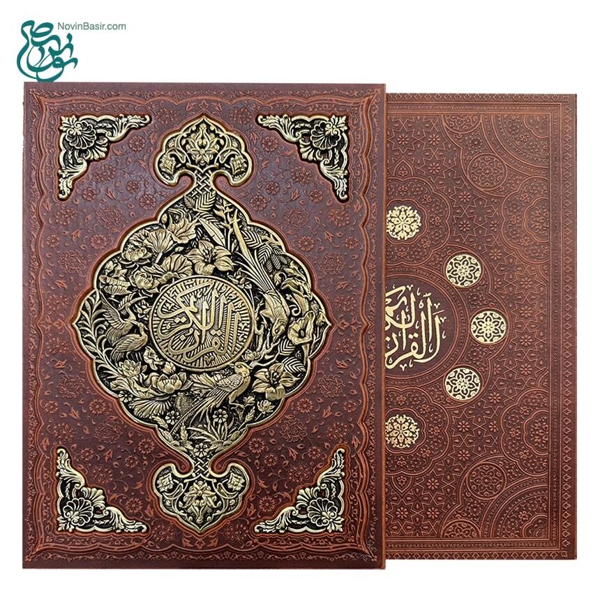 کتاب قرآن نفیس همراه با قاب کشویی طرح چرم و مس برجسته در قطع بزرگ رحلی خط عثمان طه با ترجمه فارسی استاد الهی قمشه ای همراه با تذهیب بسیار زیبا و چاپ کاملا رنگی بر روی کاغذ گلاسه توسط انتشارات نوین بصیر به صورت تک و یا در تعداد بالا با تخفیف های ویژه در سراسر ایران توزیع می گردد.