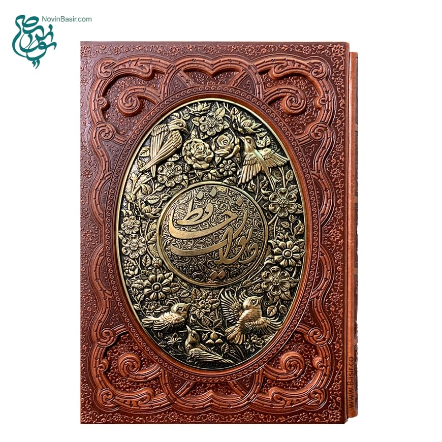 کتاب نفیس دیوان حافظ چرمی همراه با قاب کشویی طرح چرم و مس بسیار زیبا