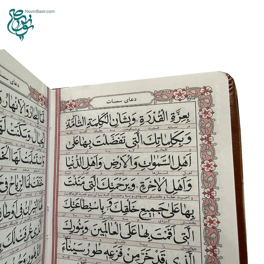 کتاب منتخب مفاتیح الجنان چرمی نفیس در قطع کوچک پالتویی با خط زیبا و درشت که به عورت تک و یا در تعداد بالا با تخفیف عالی توسط انتشارات نوین بصیر توزیع می گردد.